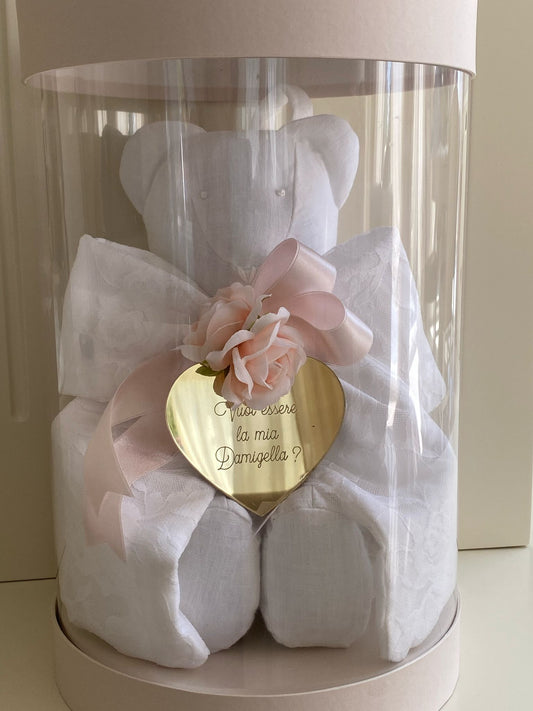Orsetto in lino 30 cm – “Vuoi essere la mia Damigella?”