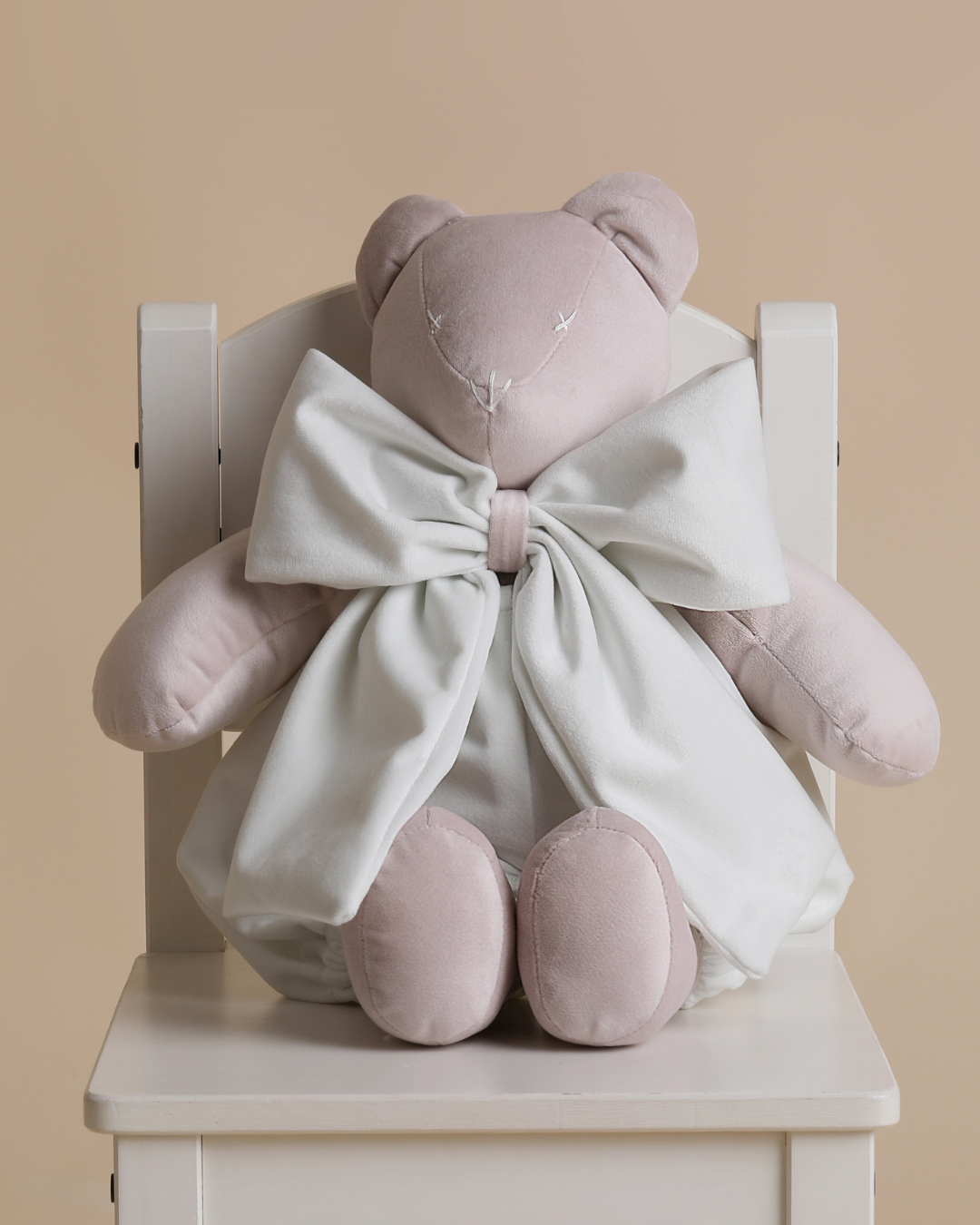 Orsetto in Velluto con fiocco e coulotte in velluto bianco